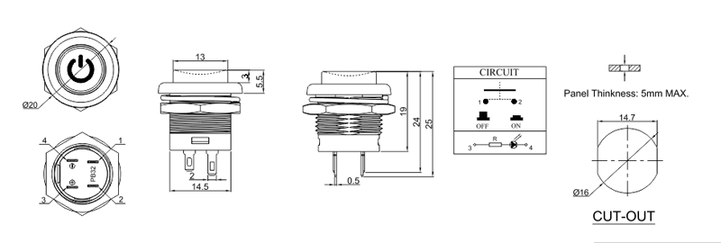 帶燈按鈕開關(guān)PB32-A-1B-W3-1A